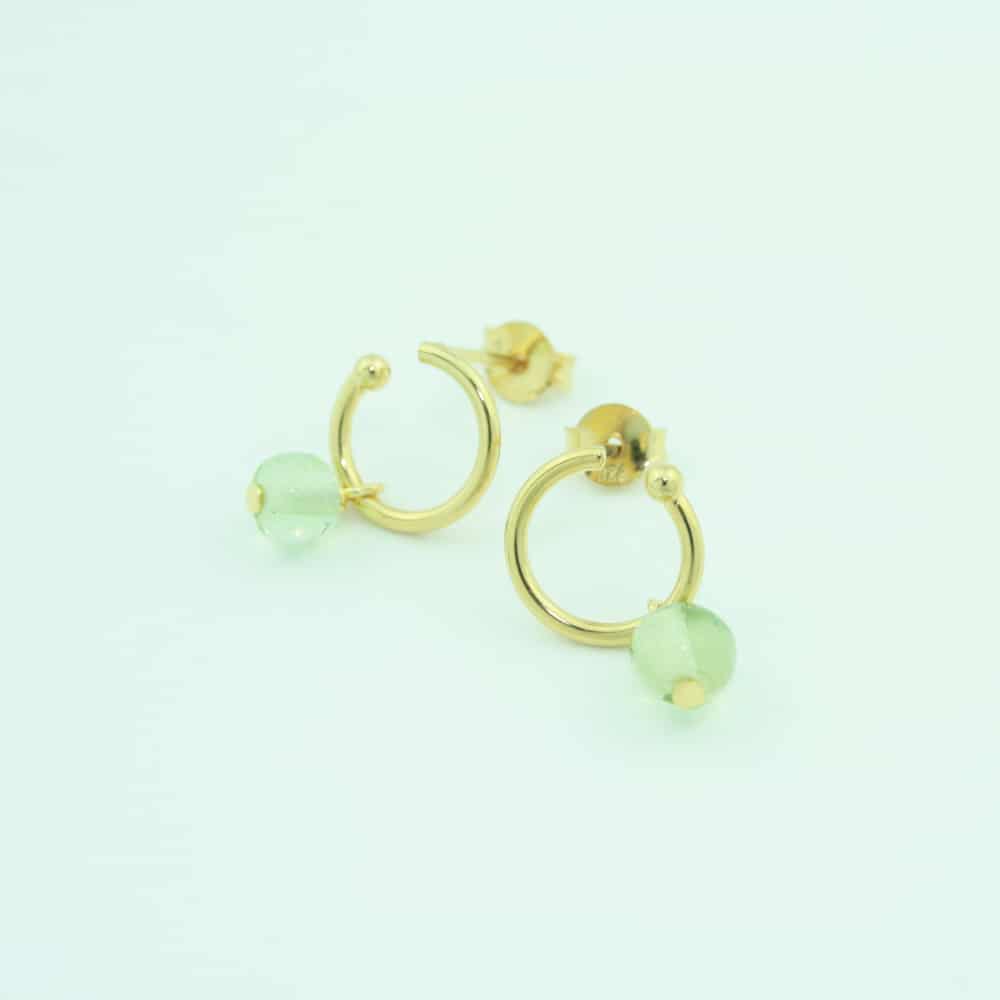 2 små ægte peridoter der repræsenterer august måned, med ophæng i sølv forgyldt med 14 karat guld. Disse små vedhæng er designet til “Circle of life” øreringene, som er en lille åben cirkel, hvorpå du nemt kan tilføje vedhængene på øreringene. Tilføj evt. et eller flere sæt birthstones vedhæng, og skab dit eget personlige smykke som kan tilpasses, så det matcher dagens outfit.