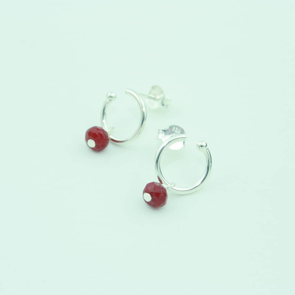 2 små ægte granater for januar måned med ophæng i sølv. Disse små vedhæng er designet til “Circle of life” øreringene, som er en lille åben cirkel, hvorpå du nemt kan tilføje vedhængene på øreringene. Tilføj evt. et eller flere sæt birthstones vedhæng, og skab dit eget personlige smykke som kan tilpasses, så det matcher dagens outfit.