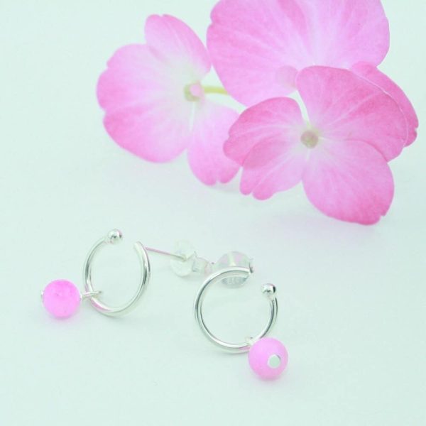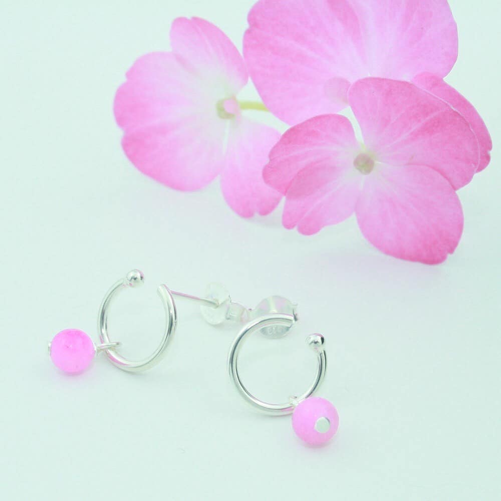 - Et par 4 mm kugler i ægte pink turmalin med ophæng i sølv
