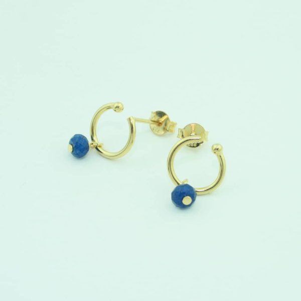 2 små ægte safirer der repræsenterer september måned, med ophæng i sølv forgyldt med 14 karat guld. Disse små vedhæng er designet til “Circle of life” øreringene, som er en lille åben cirkel, hvorpå du nemt kan tilføje vedhængene på øreringene. Tilføj evt. et eller flere sæt birthstones vedhæng, og skab dit eget personlige smykke som kan tilpasses, så det matcher dagens outfit.