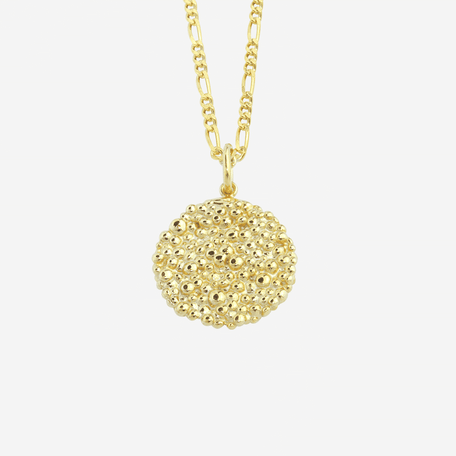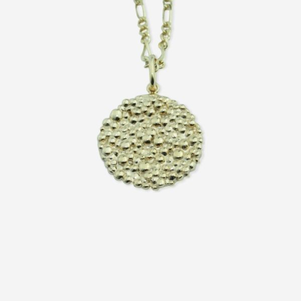 Dots Circle Glow halskæde har et rundt og råt design. Det runde design giver ethvert outfit et elegant udtryk. Den skinnede overflade giver samtidig Dots Circle Glow halskæden et feminint udtryk, og den unikke nuprede struktur kommer tydligt frem.