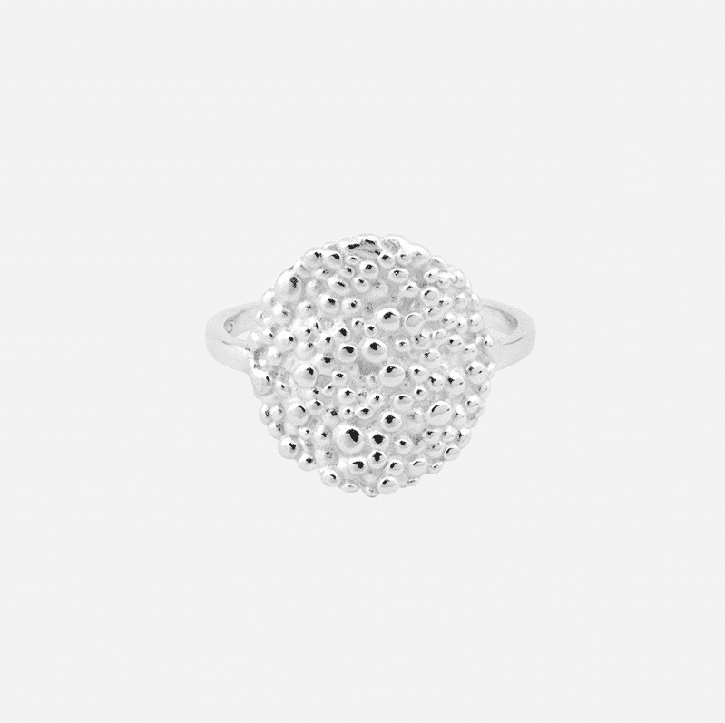 Dots Circle sølv fingerring er det nyeste design i Dots kollektionen. Fingerringens runde form buer smukt omkring fingeren, og den strukturerede overflade gør sølv ringen helt unik. Fingerringen er smuk både til hverdagsbrug og fest, og kan nemt sammensættes med andre smykker fra Dots-kollektionen for et flot smykkesæt til kvinder.