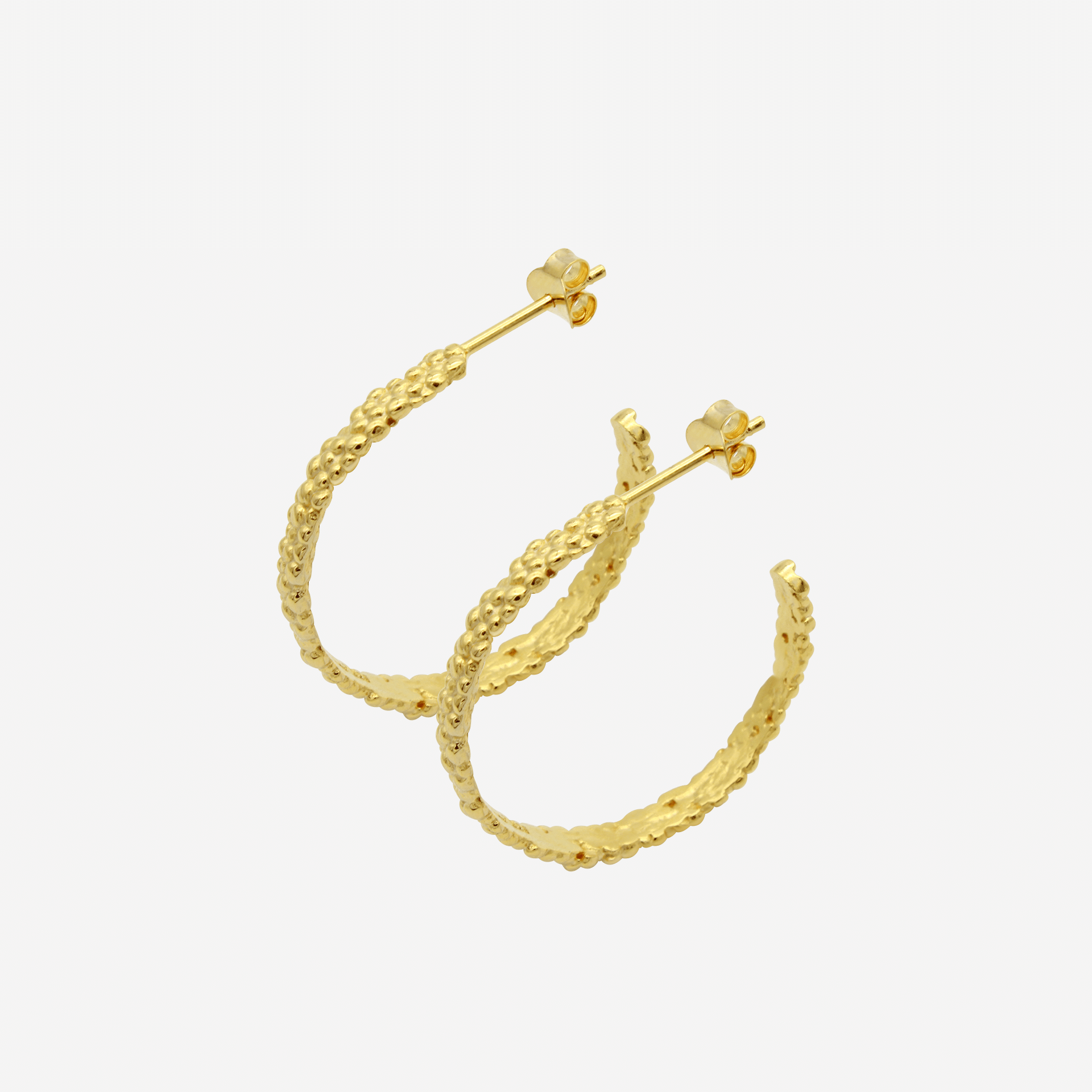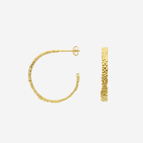 Det var helt naturligt at have store hoops med i Dots serien. Her kan man virkelig se den flotte og unikke struktur i smykkets overflader. Strukturen giver de populære hoops øreringe et nyt og cool udtryk. Øreringene er perfekte til at pifte ethvert outfit op til både hverdag og fest med familie og venner.
