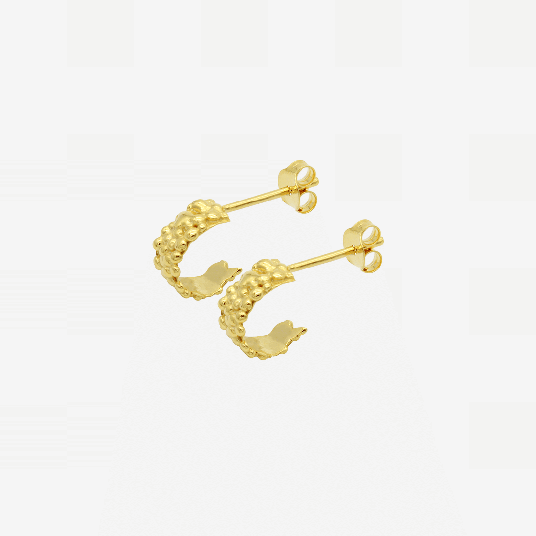 Små hoops med nupret overflade i forgyldt sølv.