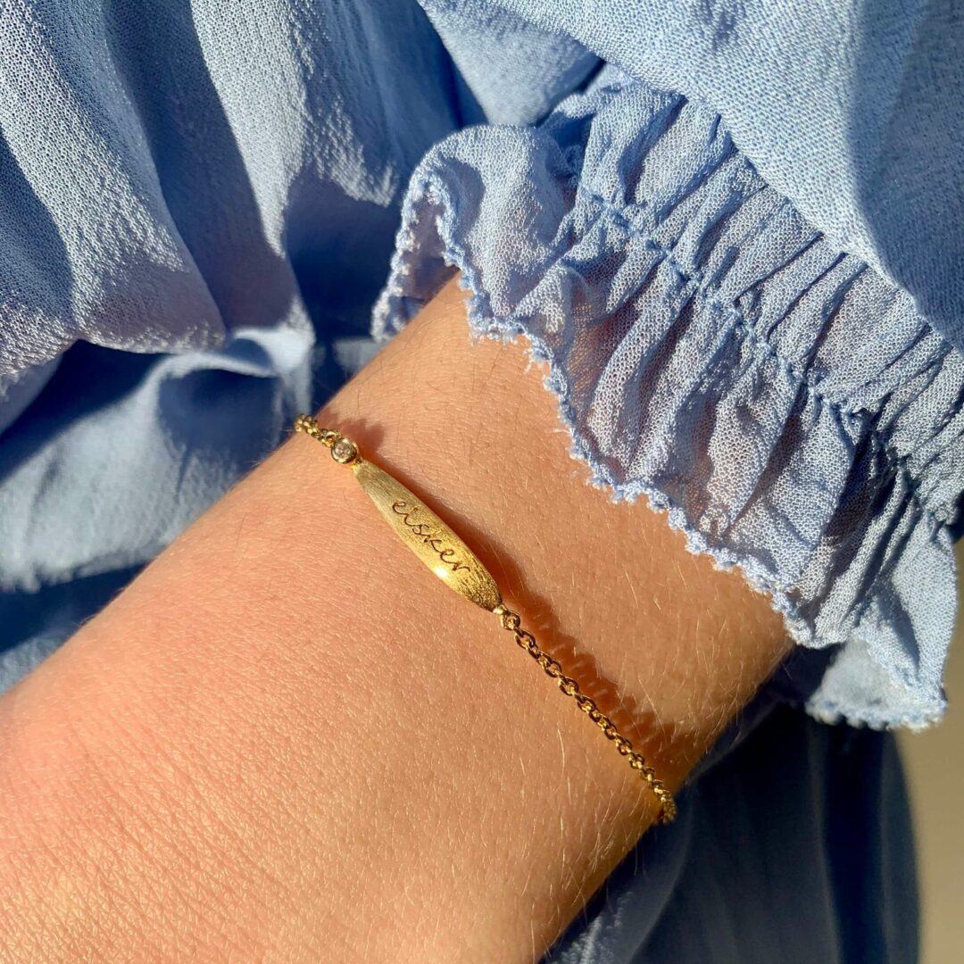 Armbåndet er i sterling sølv, forgyldt med 14 karat guld, og det kan nemt kombineres med andre armbånd fx armbåndet fra vores Globe-kollektion.