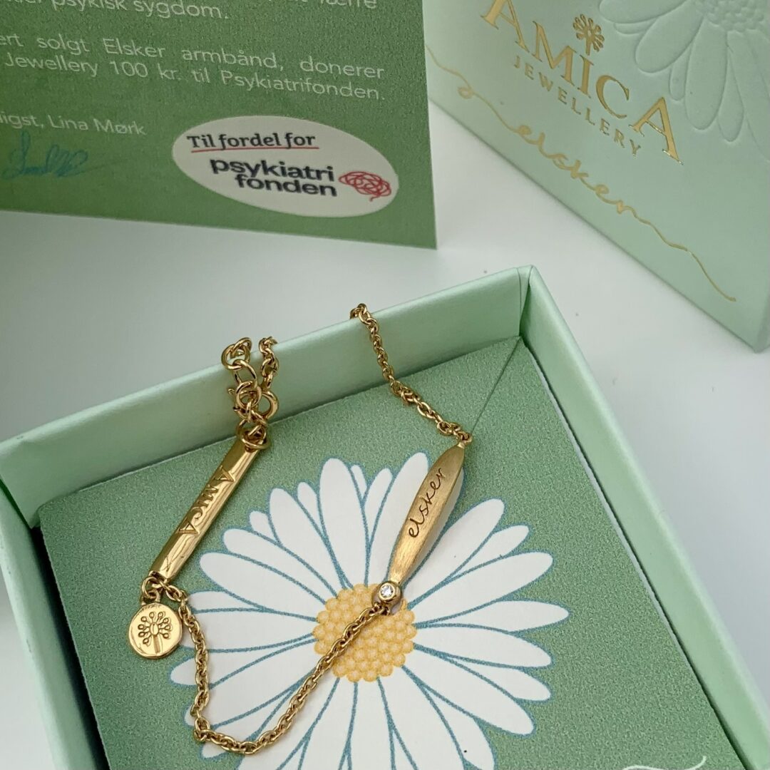 Ved hvert solgt Elsker armbånd, doneres 100 kr til Psykiatrifonden.