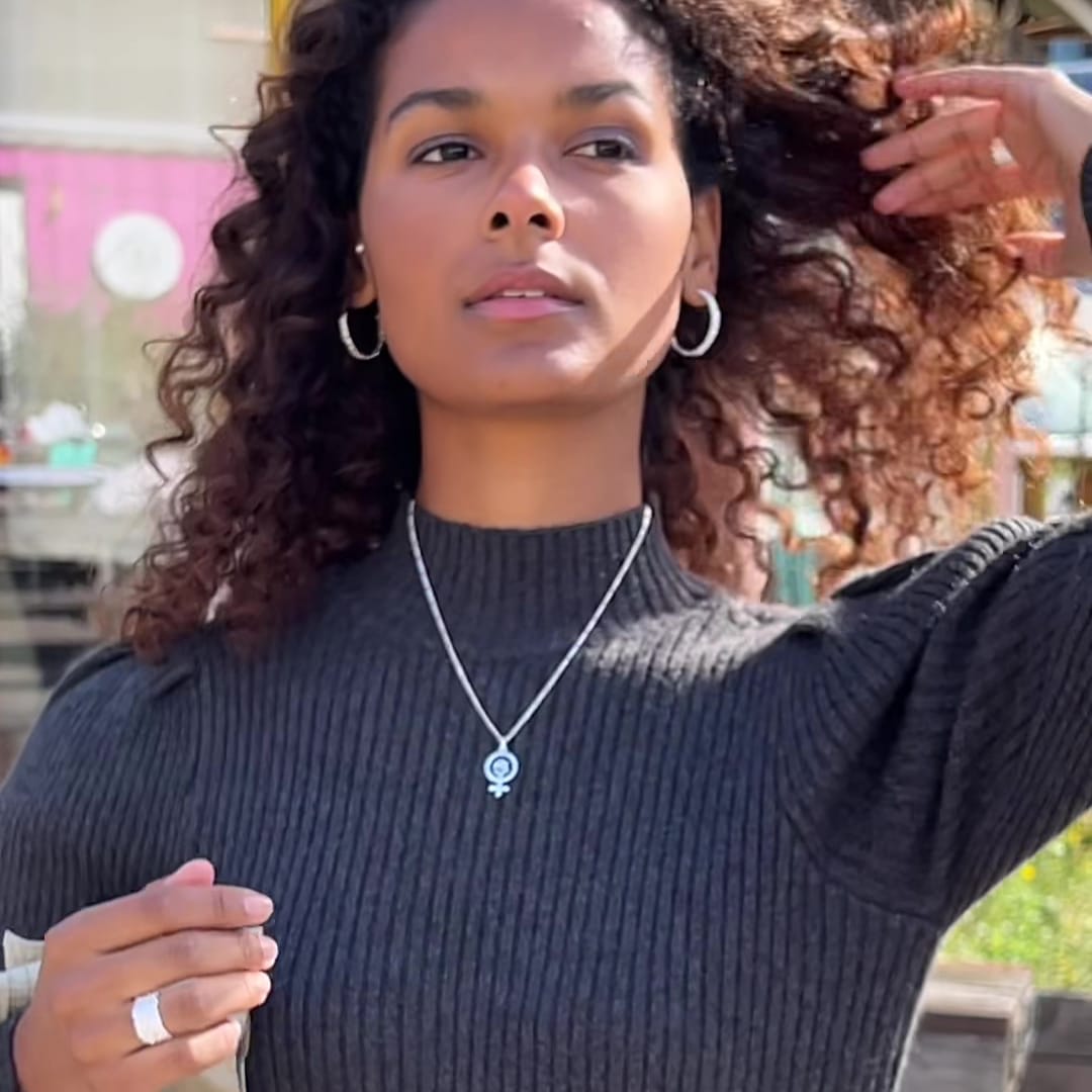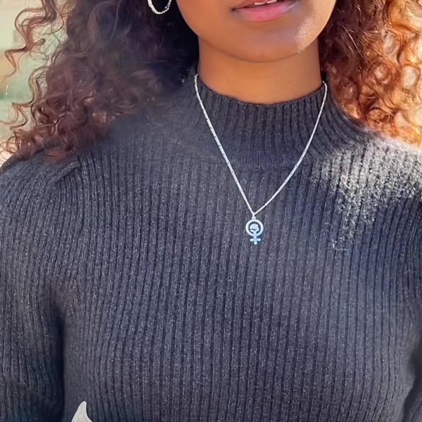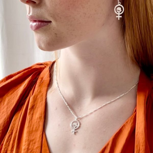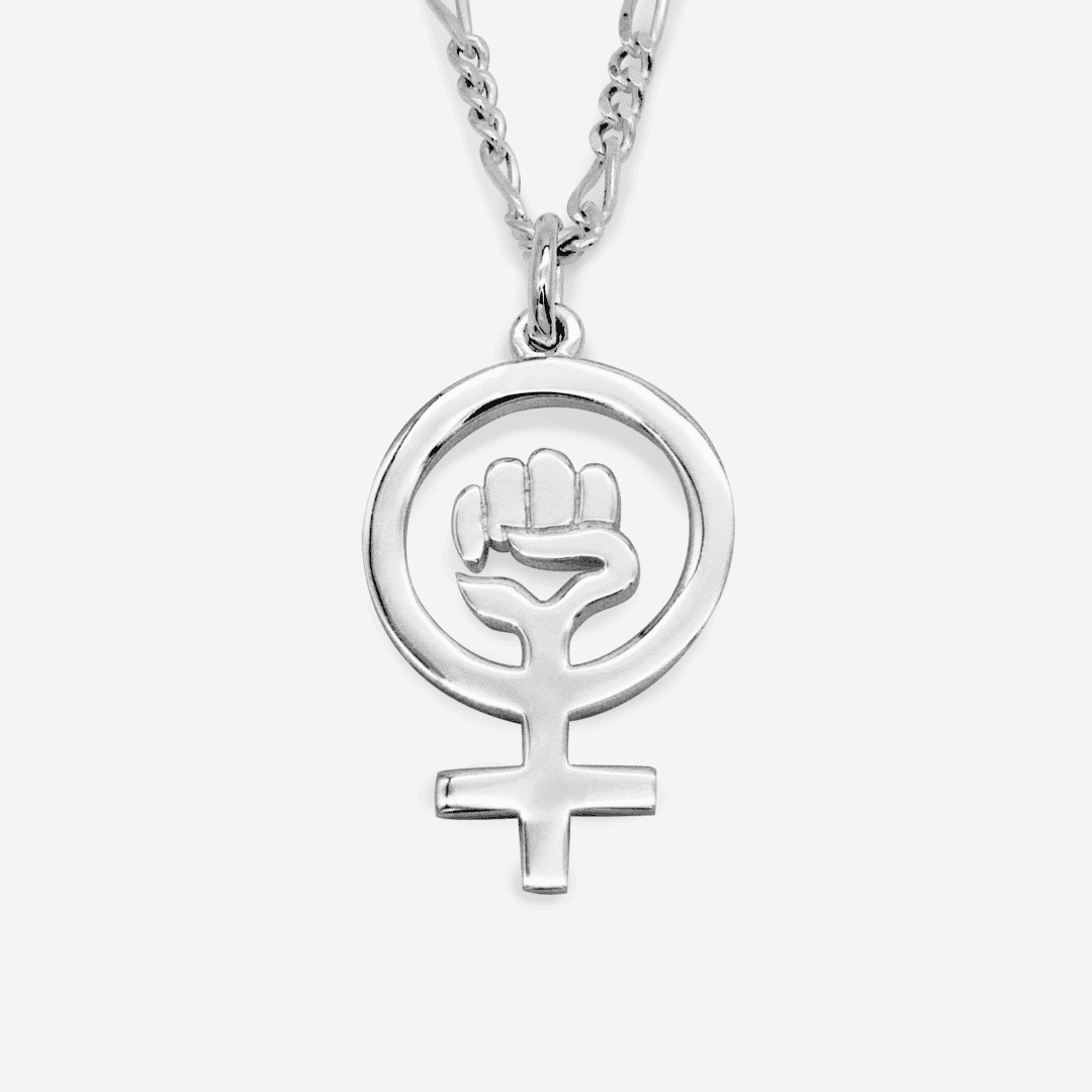 - Kvindetegn med knyttet løftet hånd som halskæde
