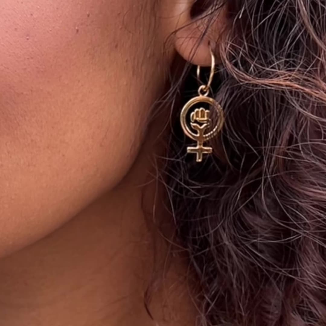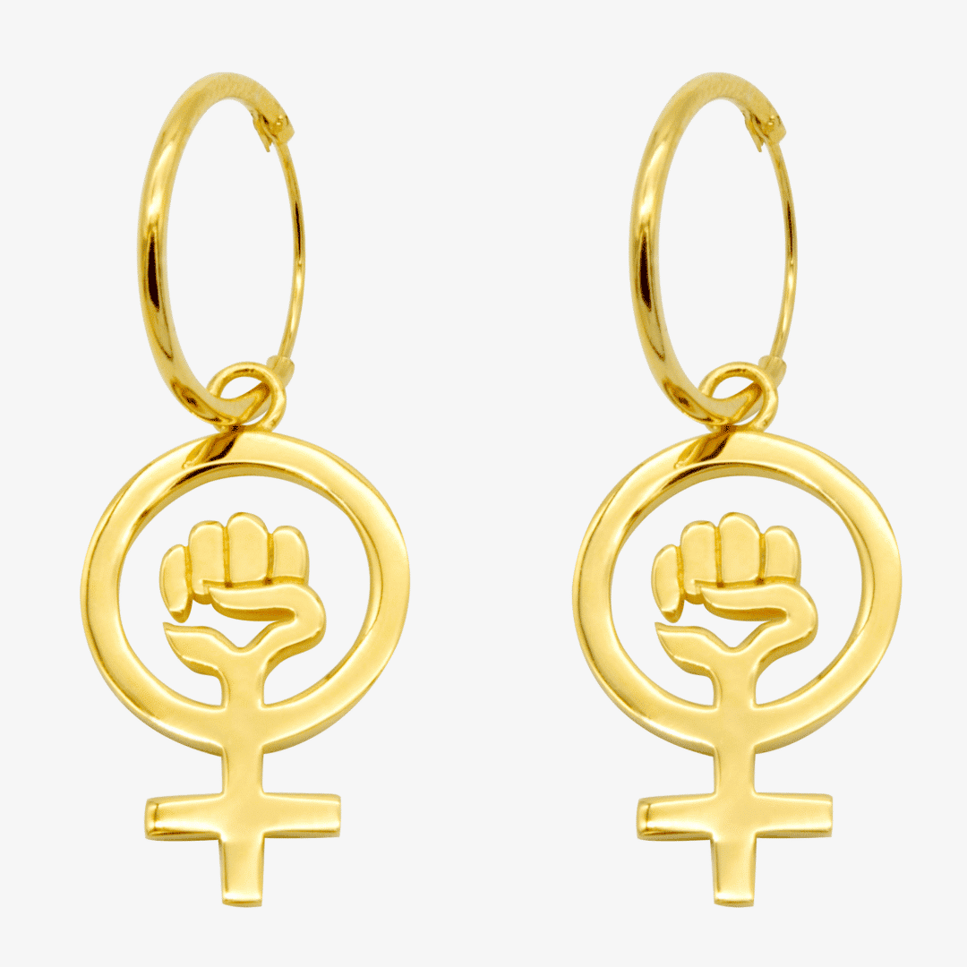 - Kvindetegn med knyttet løftet hånd som stor ørering