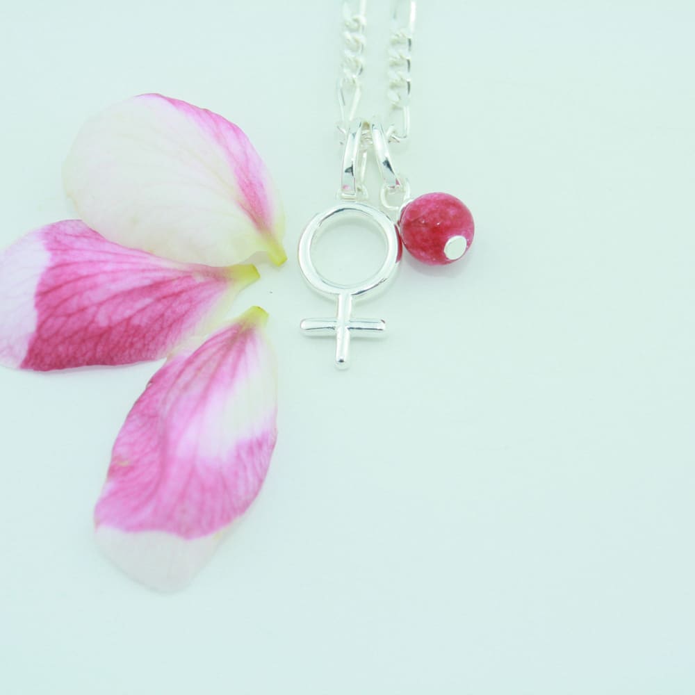- Enkelt kvindetegn i stilrent design som er flot i kombination med birthstones vedhæng